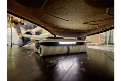 Уборка пылесосом перед влажной уборкой? Теперь в этом нет необходимости: благодаря технологии 4 встречно вращающихся роликовых щеток аккумуляторный аппарат для влажной уборки пола FC 7 Cordless легко и быстро удаляет с любых твердых напольных покрытий любые повседневные сухие и влажные загрязнения. Он тщательно очищает полы до самых стен, причем режим Boost позволяет устранять стойкую грязь, а специальный фильтр – собирать даже волосы. При этом достигается значительная экономия времени (до 50 % в сравнении с обычными методами уборки)**, а результат уборки на 20 % превосходит обеспечиваемый обычной шваброй*. Одного заряда мощного аккумулятора достаточно для 45 минут работы аппарата, что соответствует уборке до 175 м² твердых напольных покрытий (в т. ч. плиточных). Расход воды и скорость вращения автоматически увлажняемых щеток допускают регулировку (предусмотрены 2 режима уборки), а отдельные бачки для чистой и грязной воды исключают необходимость в переноске ведра с водой.