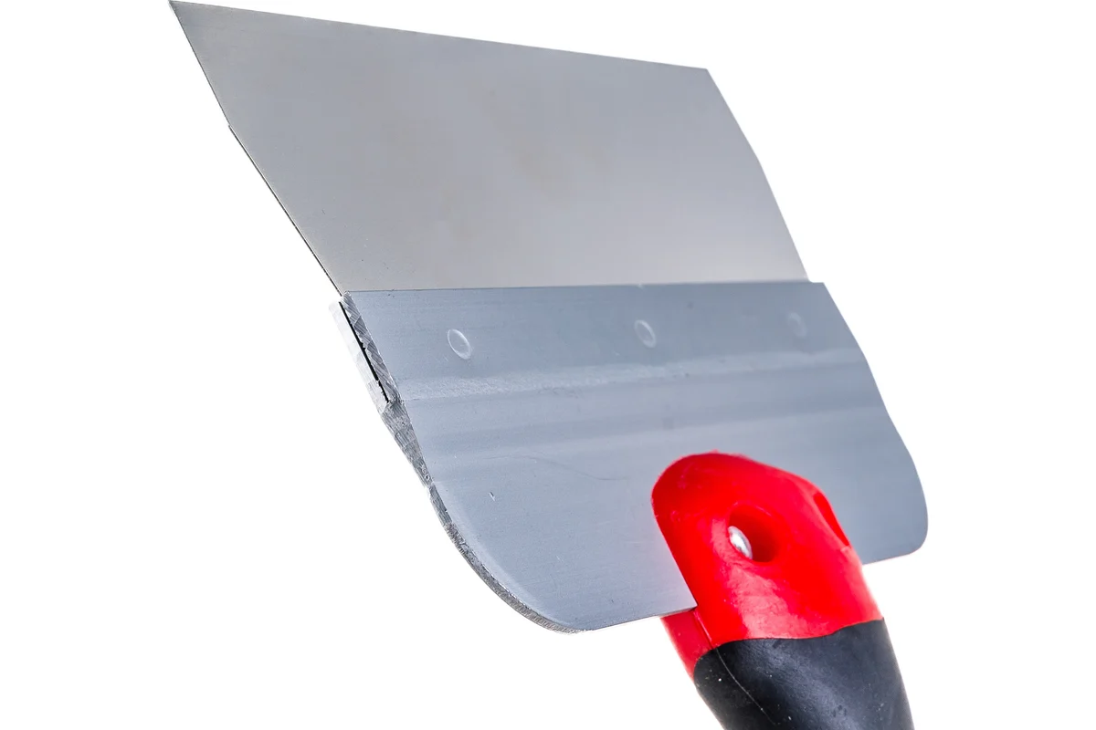 Применяется на различных поверхностях для равномерного нанесения и выравнивания разнообразных строительных растворов и смесей. Также используется для заделки трещин и швов. Материал полотна: нержавеющая сталь; Материал ручки: двухкомпонентный; Отверстие для подвешивания: есть; Ширина: 150 мм.