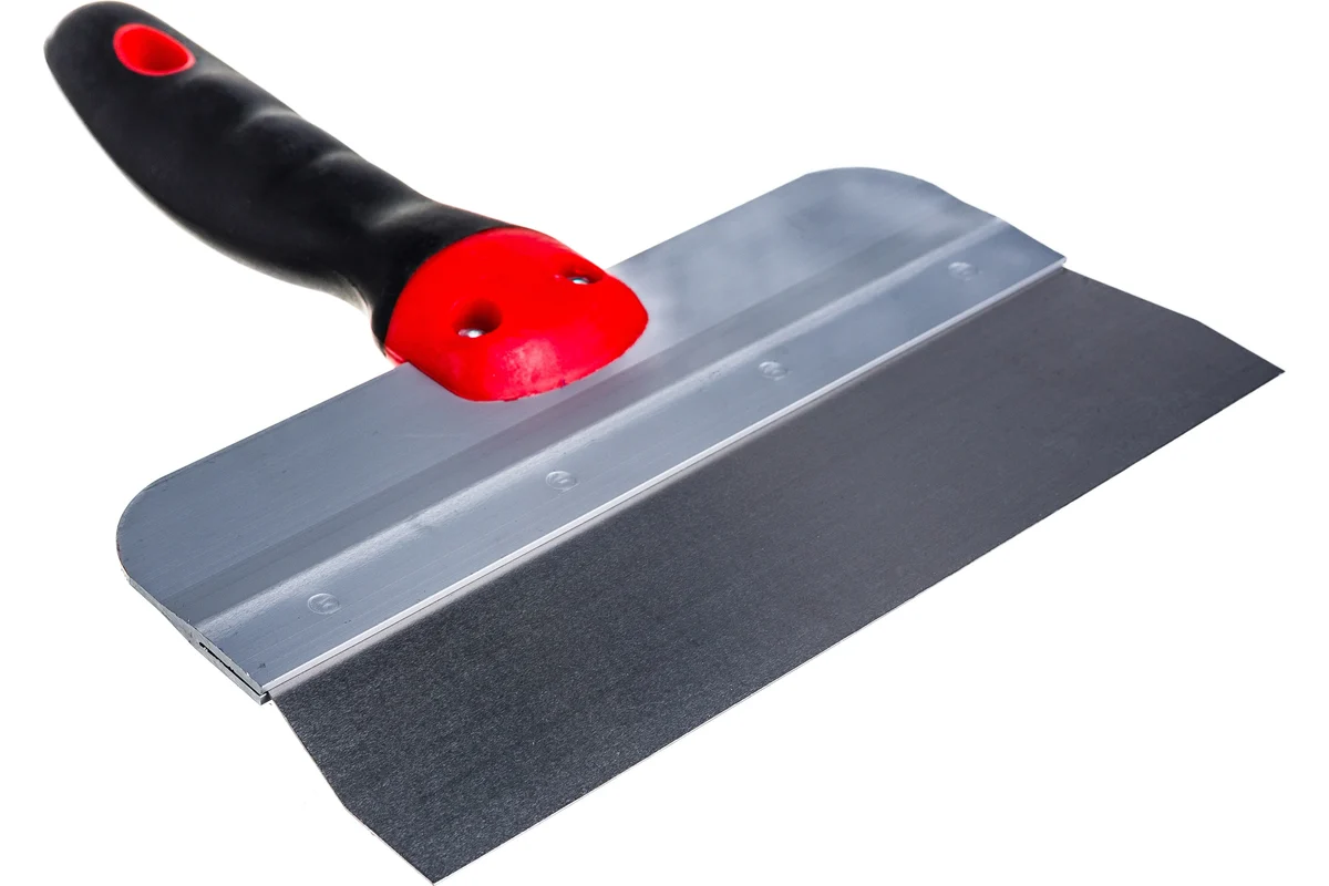 Применяется на различных поверхностях для равномерного нанесения и выравнивания разнообразных строительных растворов и смесей. Также используется для заделки трещин и швов. Материал полотна: нержавеющая сталь; Материал ручки: двухкомпонентный; Отверстие для подвешивания: есть; Ширина: 200 мм.