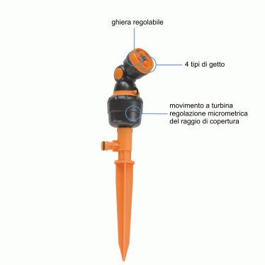 Дождеватель имеет возможность полива как по кругу, так и по отдельным секторам. Регулировочное кольцо позволяет плавно менять один из 4 видов струи. Турбинное движение обеспечивает бесшумное функционирование и аккуратное распыление. Ножка выполнена из прочного пластика для надежного использования дождевателя. Для контроля за давлением воды рекомендуем приобрести насос.