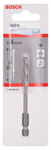 Сверло для металла (Ø 4,0 х 43мм) HSS-G, шестигранник 1/4' Bosch (2 608 595 513) 1 шт.
