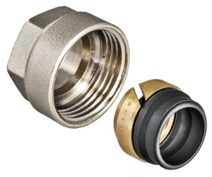 • Латунный фитинг с накидной гайкой, обжимным кольцом и резиновым уплотнением для подключения медной трубы диаметром 15 мм к коллектору VALTEC с выходами диаметром 3/4", стандарт соединения – «евроконус».
