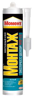 • Монтажный клей «Момент Монтаж Экспресс Декор » является высококачественным универсальным клеем, разработанным специально для склеивания широкого спектра конструкций внутри помещения.