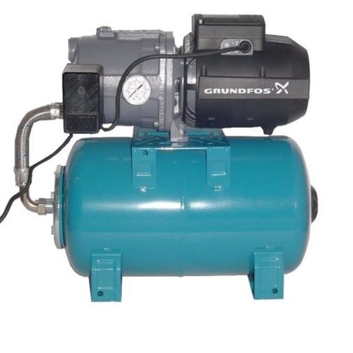 Насос закачивает воду под давлением в гидроаккумулятор объёмом 20 л. После того, как резервуар заполнится, станция отключается и водоснабжение происходит за счёт запасённой воды. Когда давление снижается (т.е. вода заканчивается), реле автоматически запускает насос для возобновления цикла.