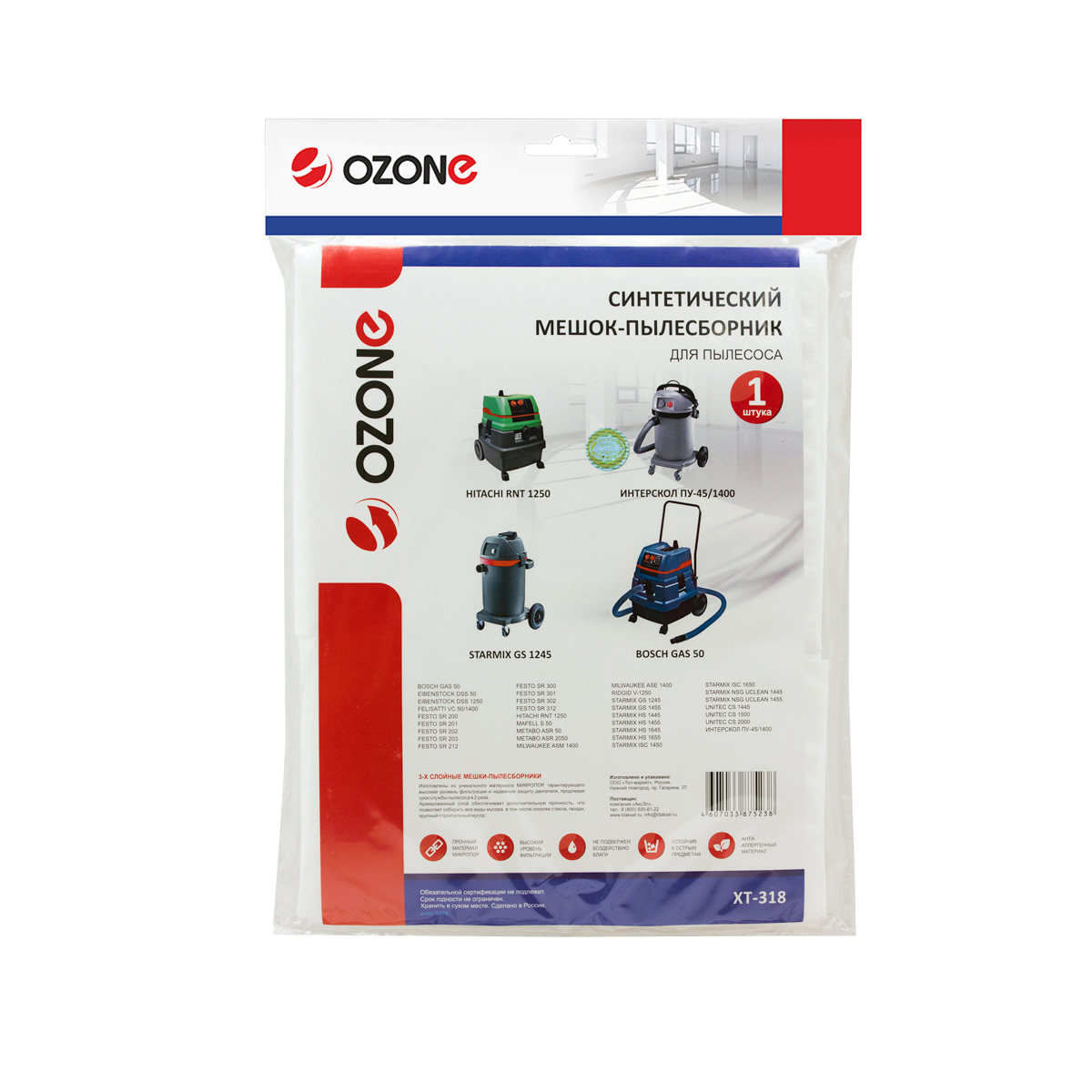 • Мешок-пылесборник turbo OZONE XT-318 - это одноразовый мешок, который изготовлен из синтетического четырехслойного материала"micro-por".