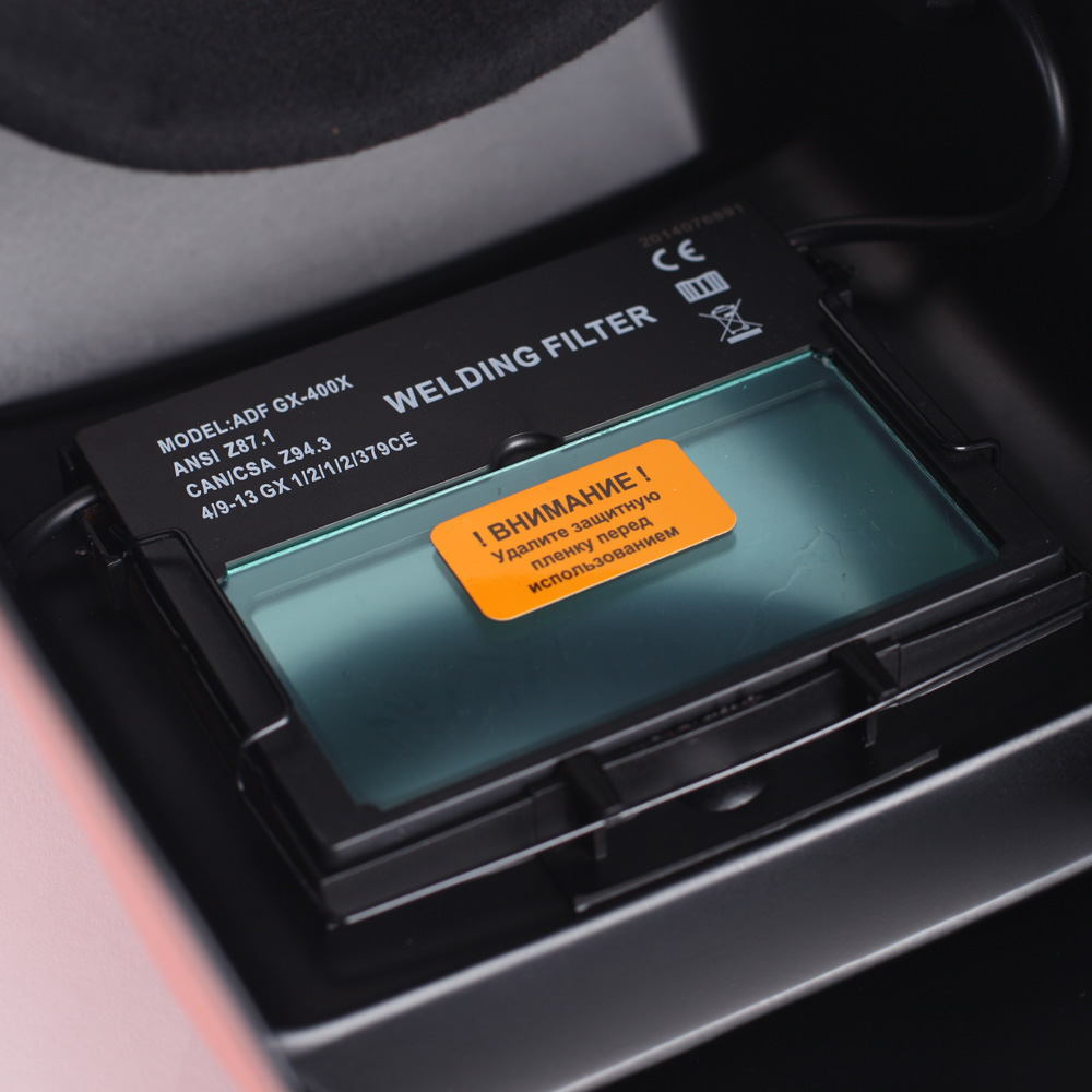• При возникновении дуги стекло моментально затемняется, при завершении работы также быстро становится прозрачным.