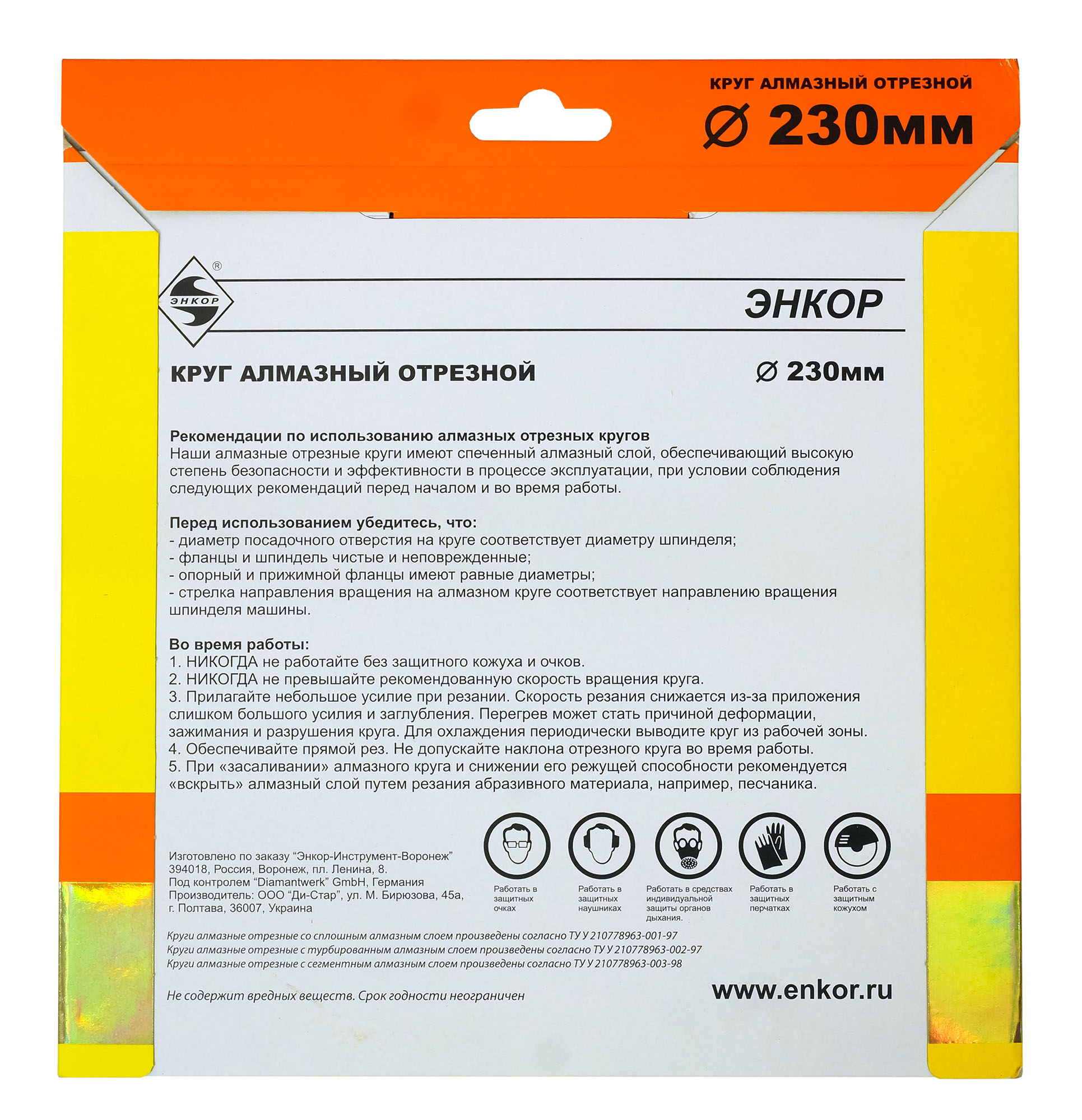 | Алмазные отрезные круги "Энкор", изготовлены по технологии холодного прессования. |