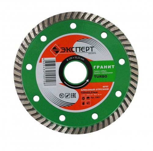 Алмазные отрезные круги Энкор - Эксперт турбо, изготовлены по технологии холодного прессования из алмазного сырья самого высокого качества. Качество алмазной смеси определяется однородностью форм и размеров искусственных кристаллов, их величиной и наличием примесей. Методика формирования режущей кромки из алмазосодержащей смеси высоким давлением, непосредственно на корпусе круга с последующим спеканием, широко применяется при изготовлении подобных изделий. Качество и цена конечного продукта определяется здесь правильным подбором состава материала связки, качеством алмазов и чётко выдержанным технологическим процессом.