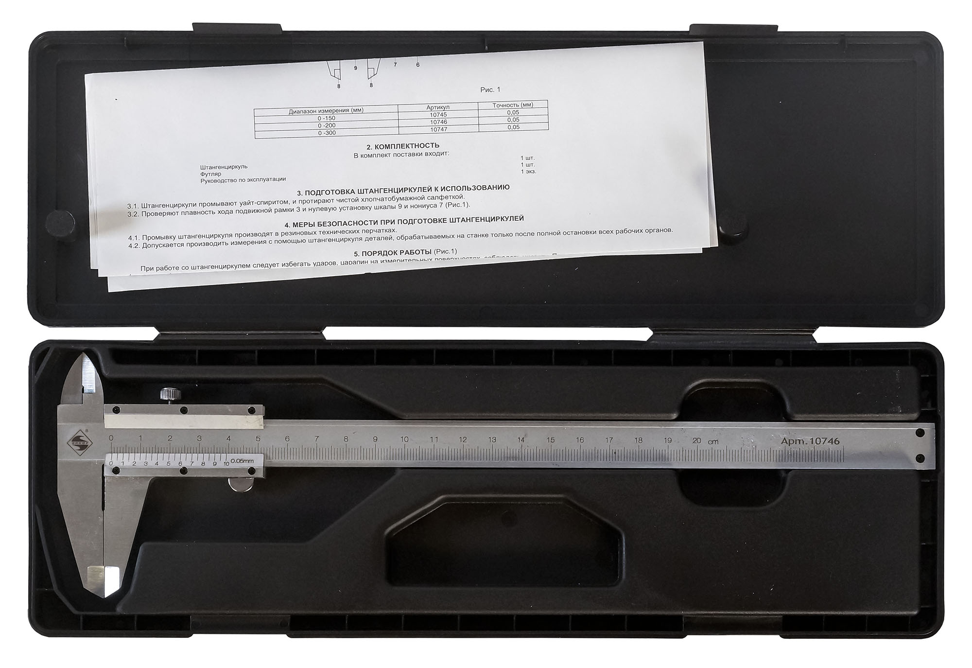 • Штангенциркуль имеет прочную металлическую конструкцию, которая повышает рабочий ресурс инструмента.