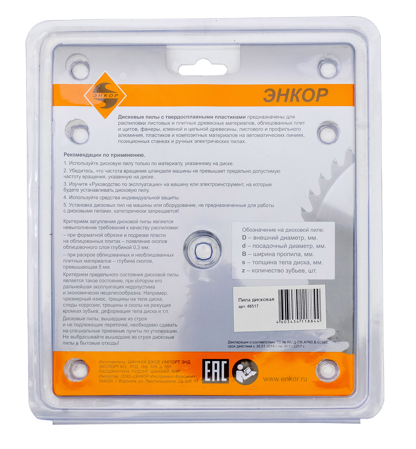 • Диск пильный Энкор 48517 предназначен для продольного и поперечного реза мягкой и твердой древесины и её производных.