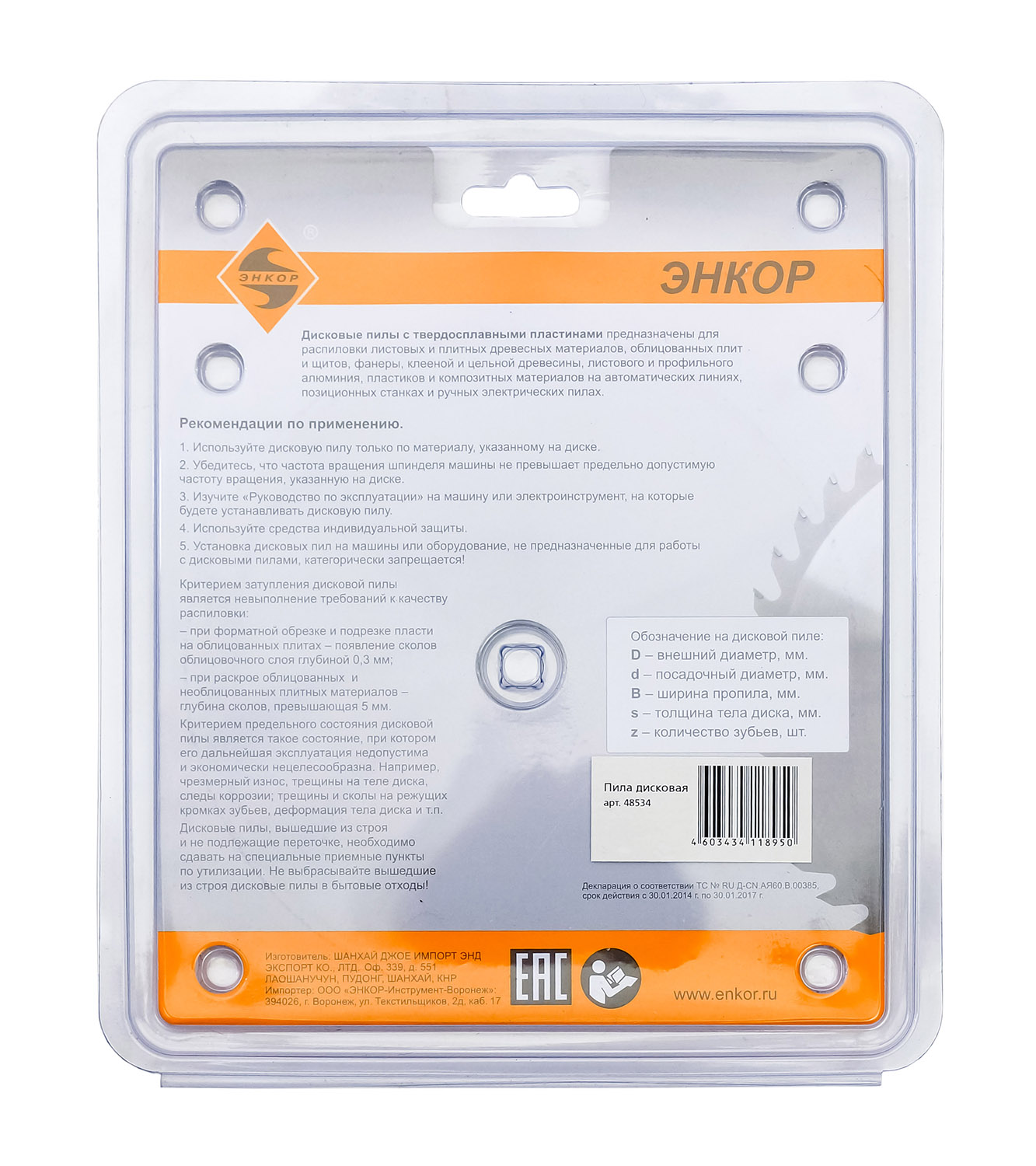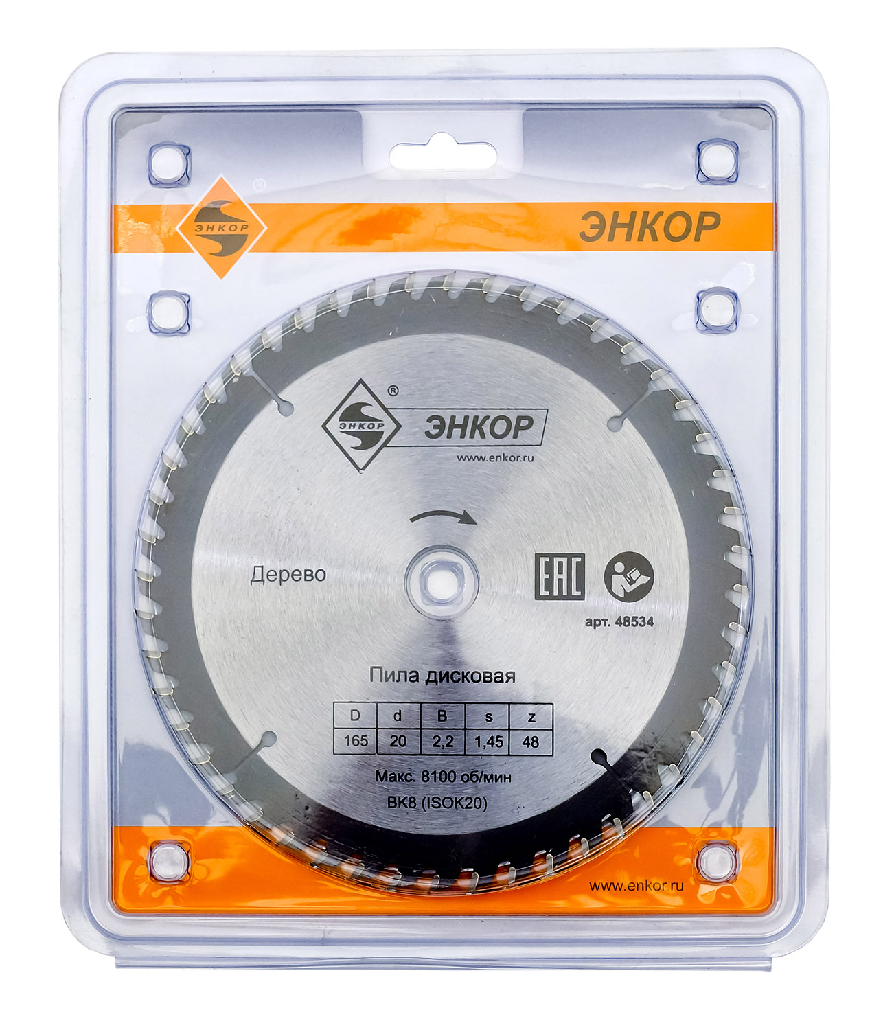 • Диск пильный Энкор 48534 предназначен для продольного и поперечного реза мягкой и твердой древесины и её производных.