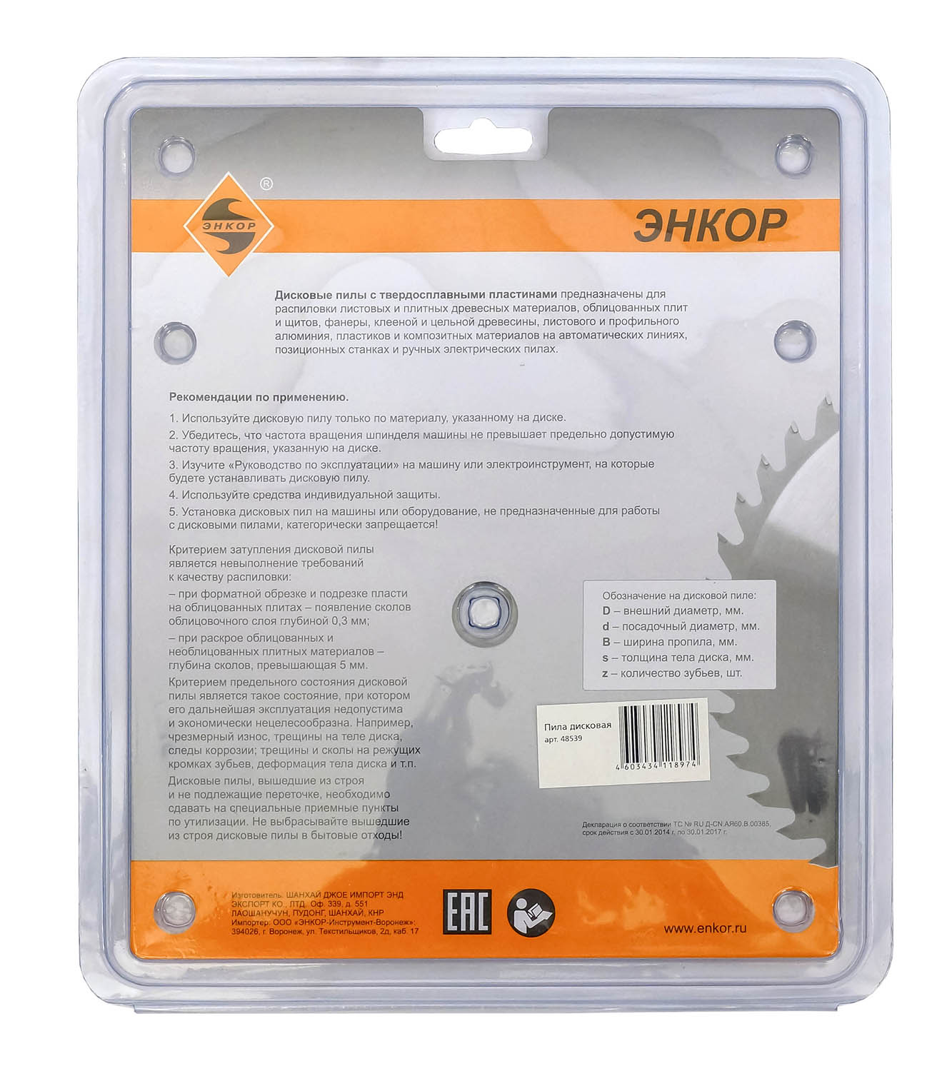 • Диск пильный Энкор 48539 предназначен для продольного и поперечного реза мягкой и твердой древесины и её производных.