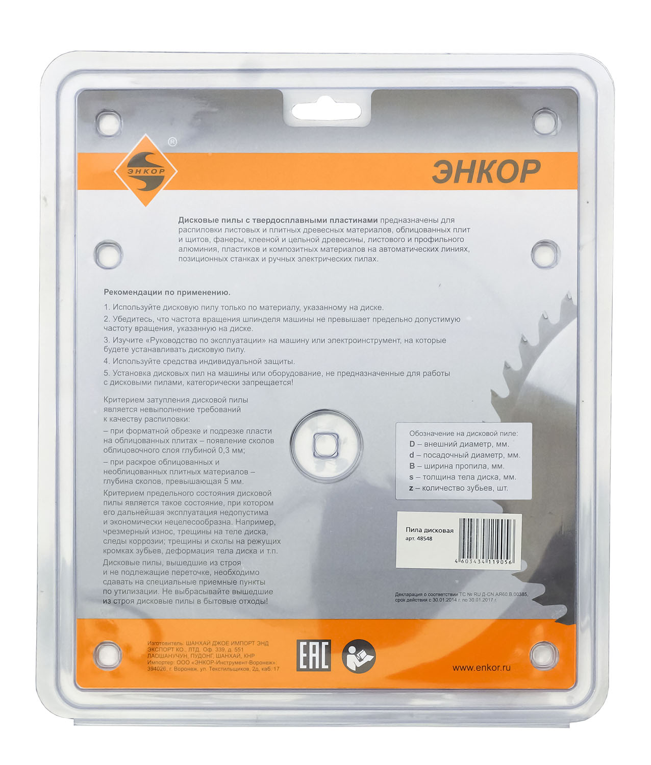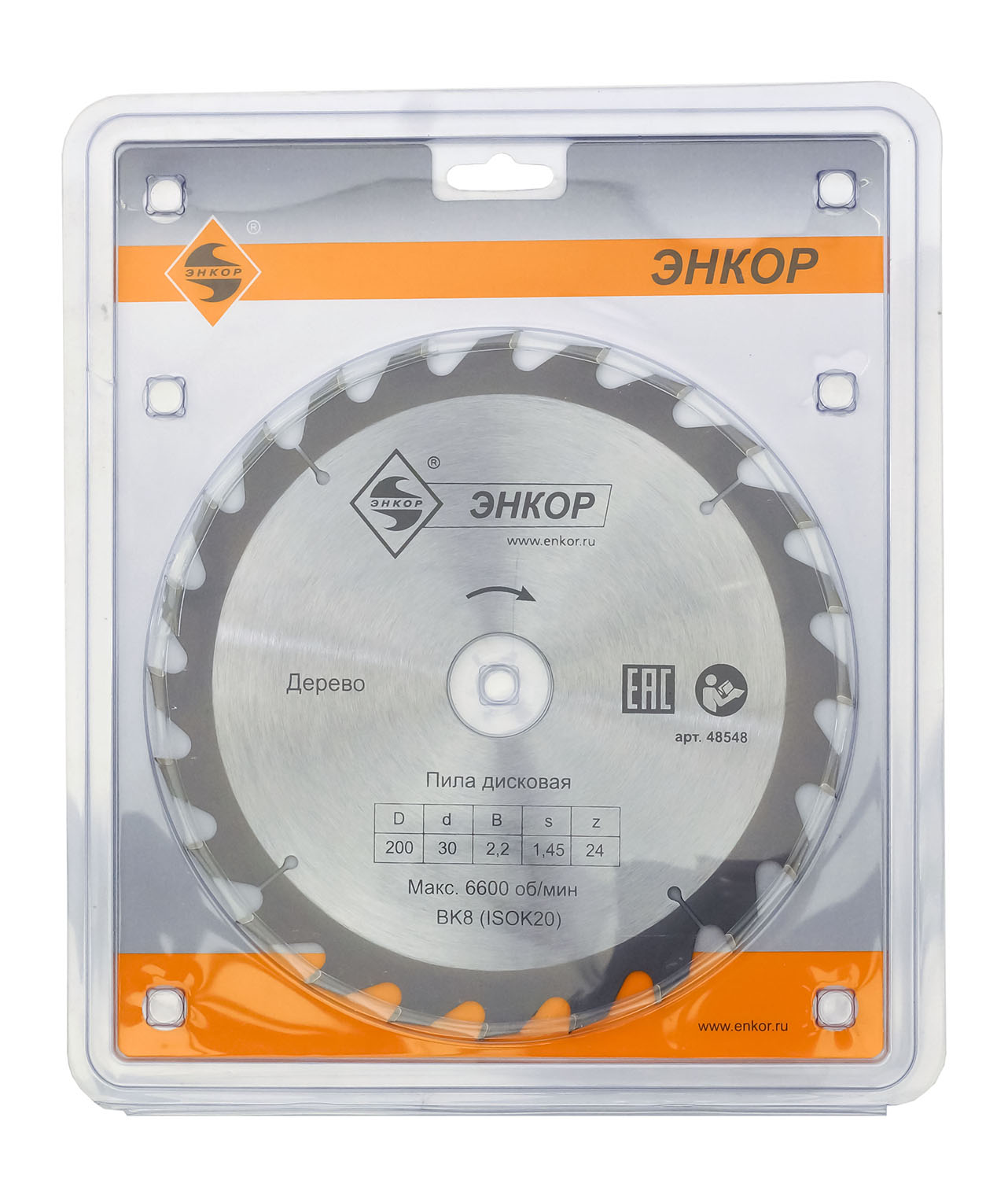• Диск пильный Энкор 48548 предназначен для продольного и поперечного реза мягкой и твердой древесины и её производных.