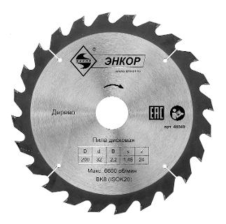 Диск пильный по дереву (200х32 мм; z24) Энкор (48549)