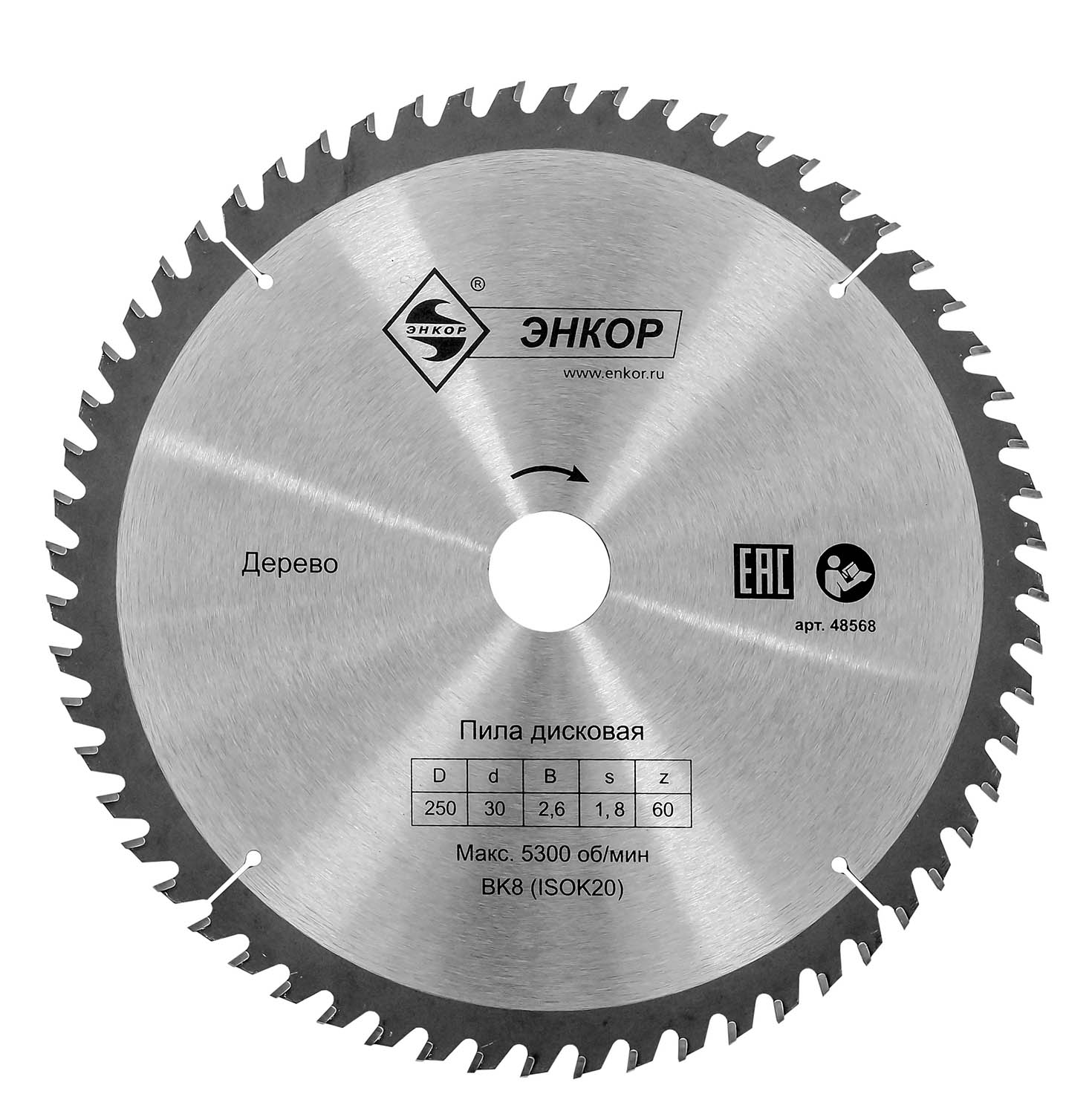 • Диск Энкор 48568 является сменным элементом для торцовочных и циркулярных пил.