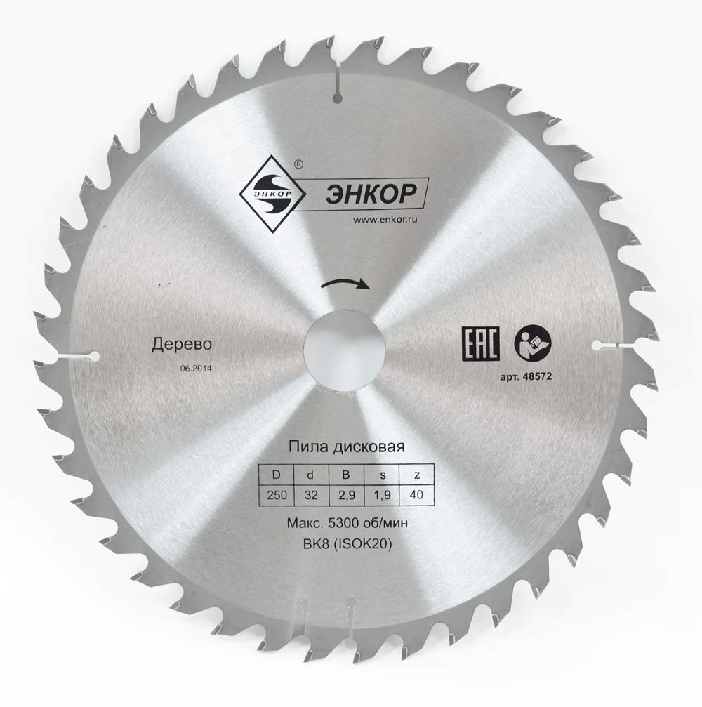 • Диск Энкор 48572 является сменным элементом для торцовочных и циркулярных пил.