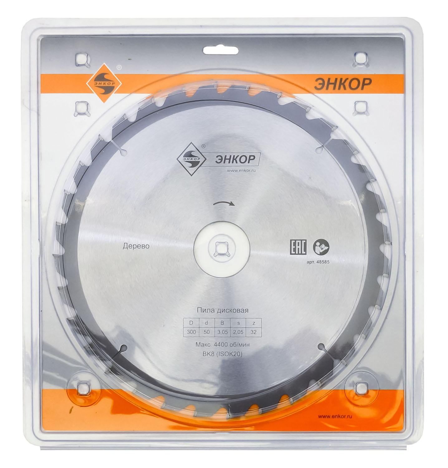 • Диск пильный Энкор 48585 предназначен для продольного и поперечного реза мягкой и твердой древесины и её производных.
