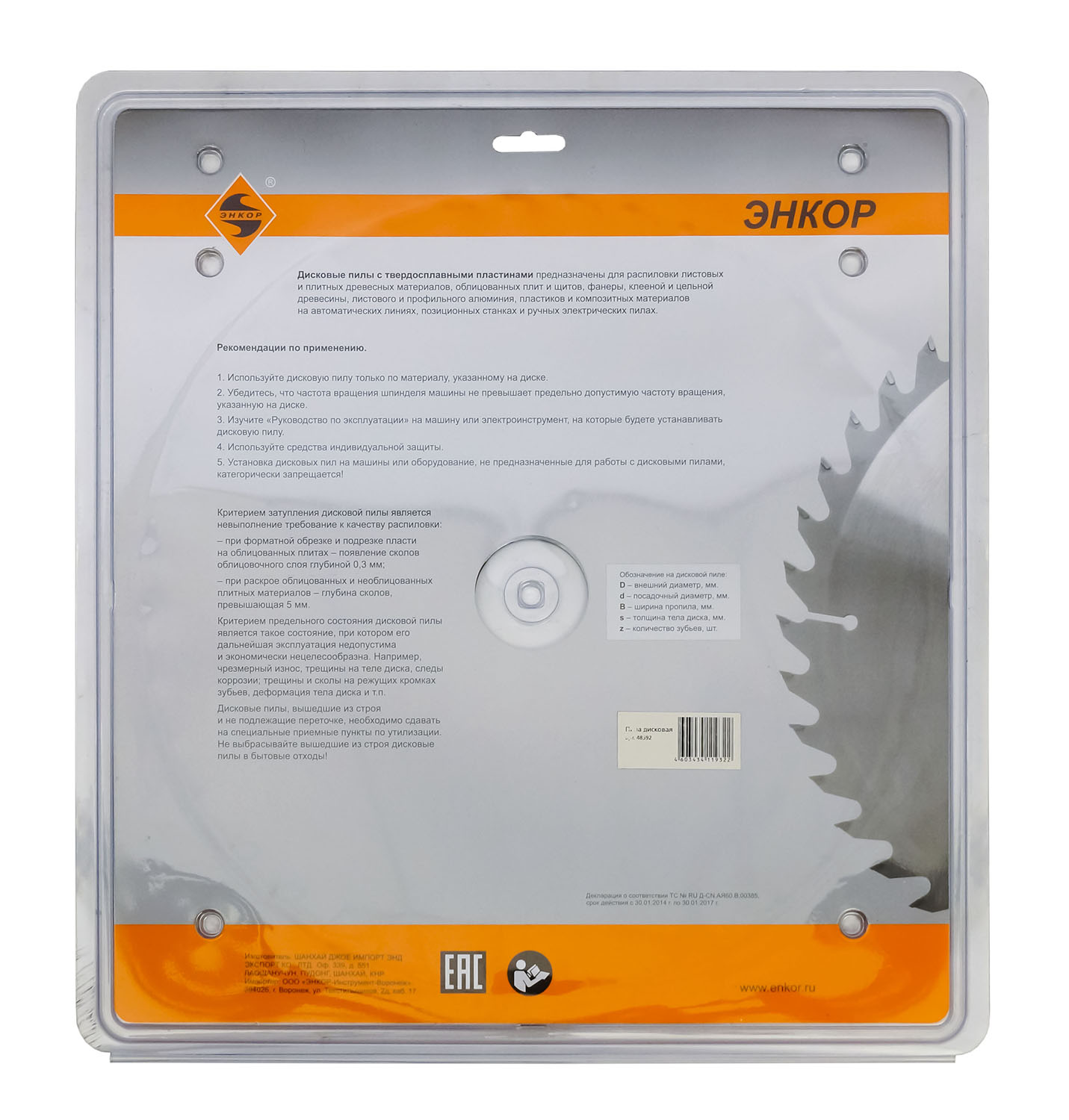 • Диск пильный Энкор 48592 предназначен для продольного и поперечного реза мягкой и твердой древесины и её производных.