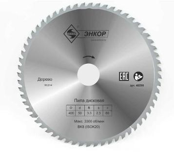 • Диск Энкор 48599 является сменным элементом для торцовочных и циркулярных пил.