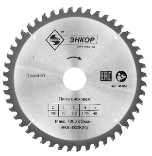 Диск пильный по ламинату (190х30 мм; z48) Энкор (48804)