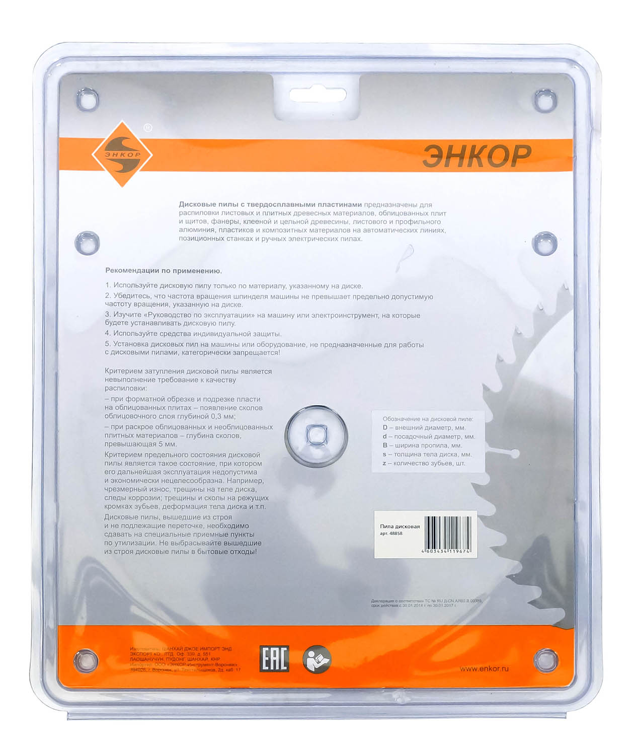 Диск пильный Энкор 48858 предназначен для распиловки алюминиевых профилей с толщиной стенки от 1 миллиметра и более, а так же для работы с пластиками различных толщин и плотности.
