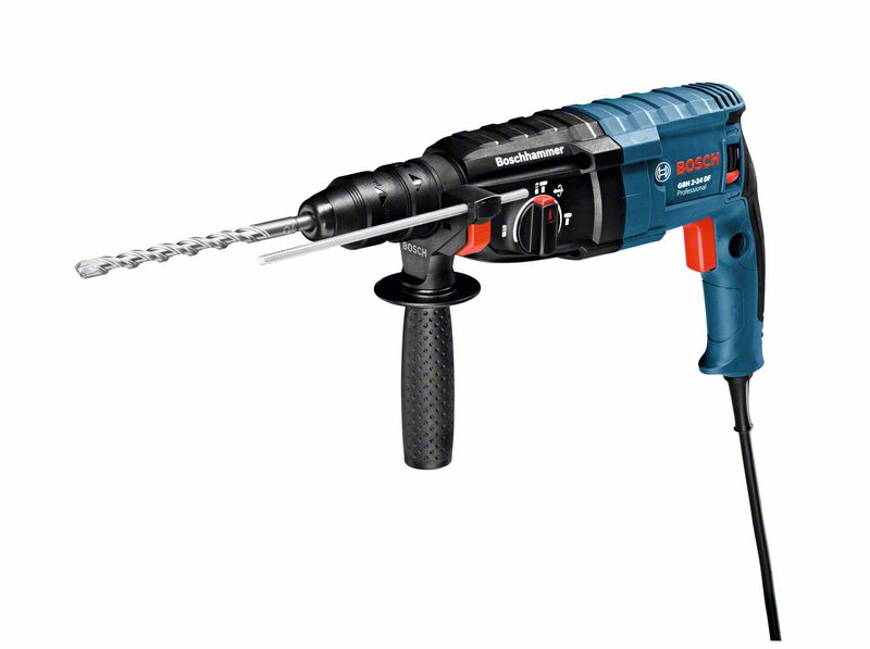 Перфоратор GBH 2-24 DF имеет гибкое крепление кабеля, что предохраняет его от повреждений и увеличивает манёвренность пользователя. Модель комплектуется ограничителем глубины сверления и дополнительной рукояткой для более комфортного и аккуратного выполнения работ.