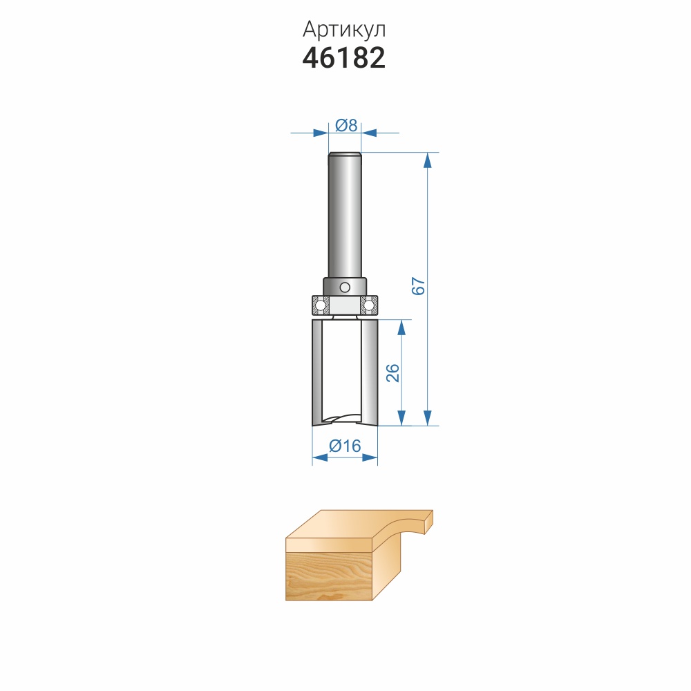 Фреза Энкор 46182 предназначена для чистовой обработки кромки и торца изделия из различных пород древесины.