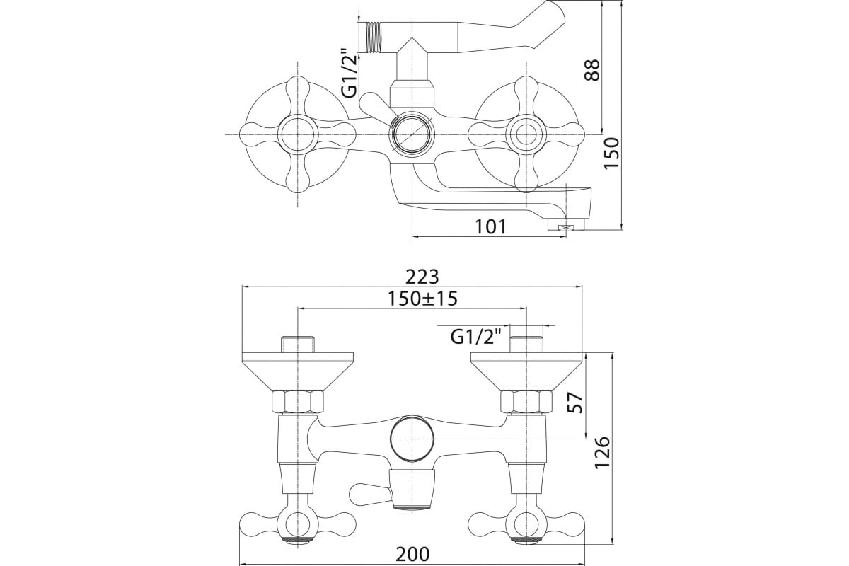Konner Classic CLS2500 - классический смеситель для ванны с коротким изливом и керамическими кран-буксами.