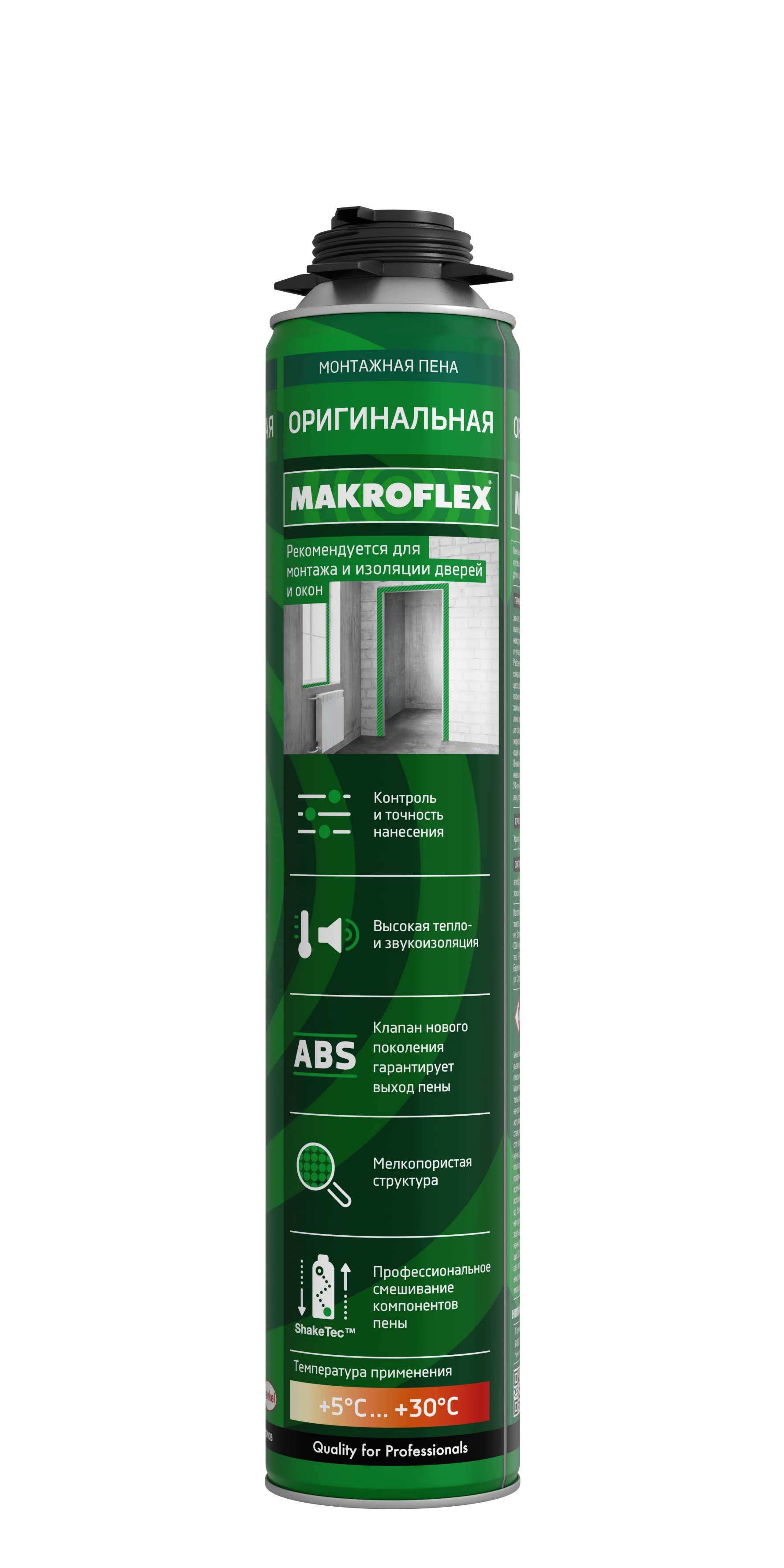 Пена монтажная Макрофлекс Оригинальная ПРО, 750мл– высококачественная однокомпонентная монтажная пена, произведена с применением уникальных технологий ABS technology и ShakeTec.Инновационная технология ShakeTec – шарик внутри.Отлично работает в широких швах.Высокая тепло- и звукоизоляция.Однородная мелкопористая структура.Устойчивость к плесени и влаге.Новый не залипающий клапан - хранение в любом положении.
