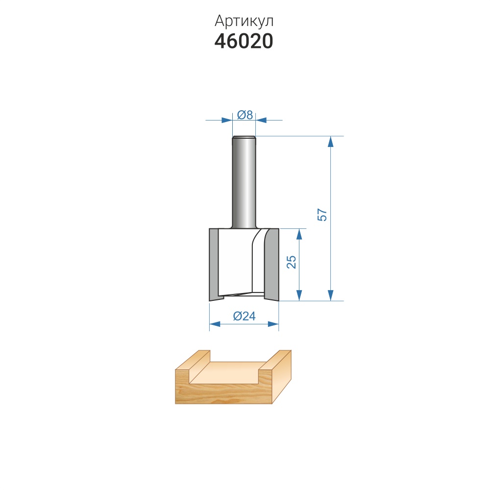 Фреза Энкор 46020 предназначена для изготовления пазов (канавок) требуемой ширины и глубины в изделиях из различных пород древесины.