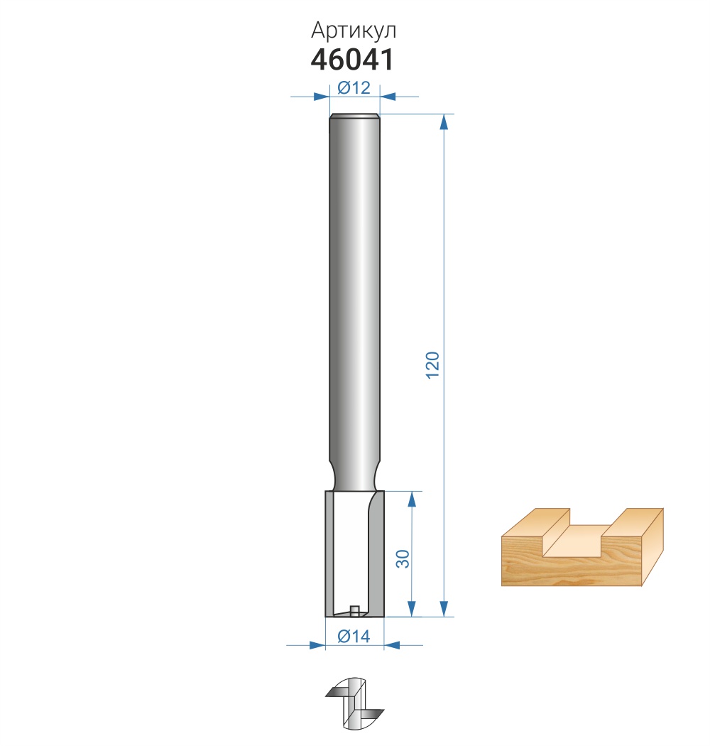 Фреза пазовая прямая (Ø 14х30x120 мм; хвостовик 12 мм) Энкор (46041)