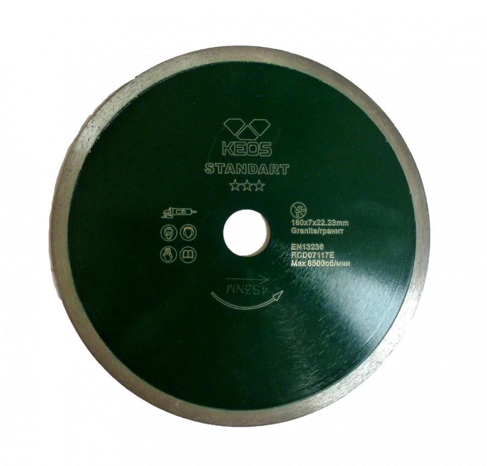 • Алмазный диск Standart KEOS DBS01.180 является сменным элементом для плиткорезов и угловых шлифовальных машин.