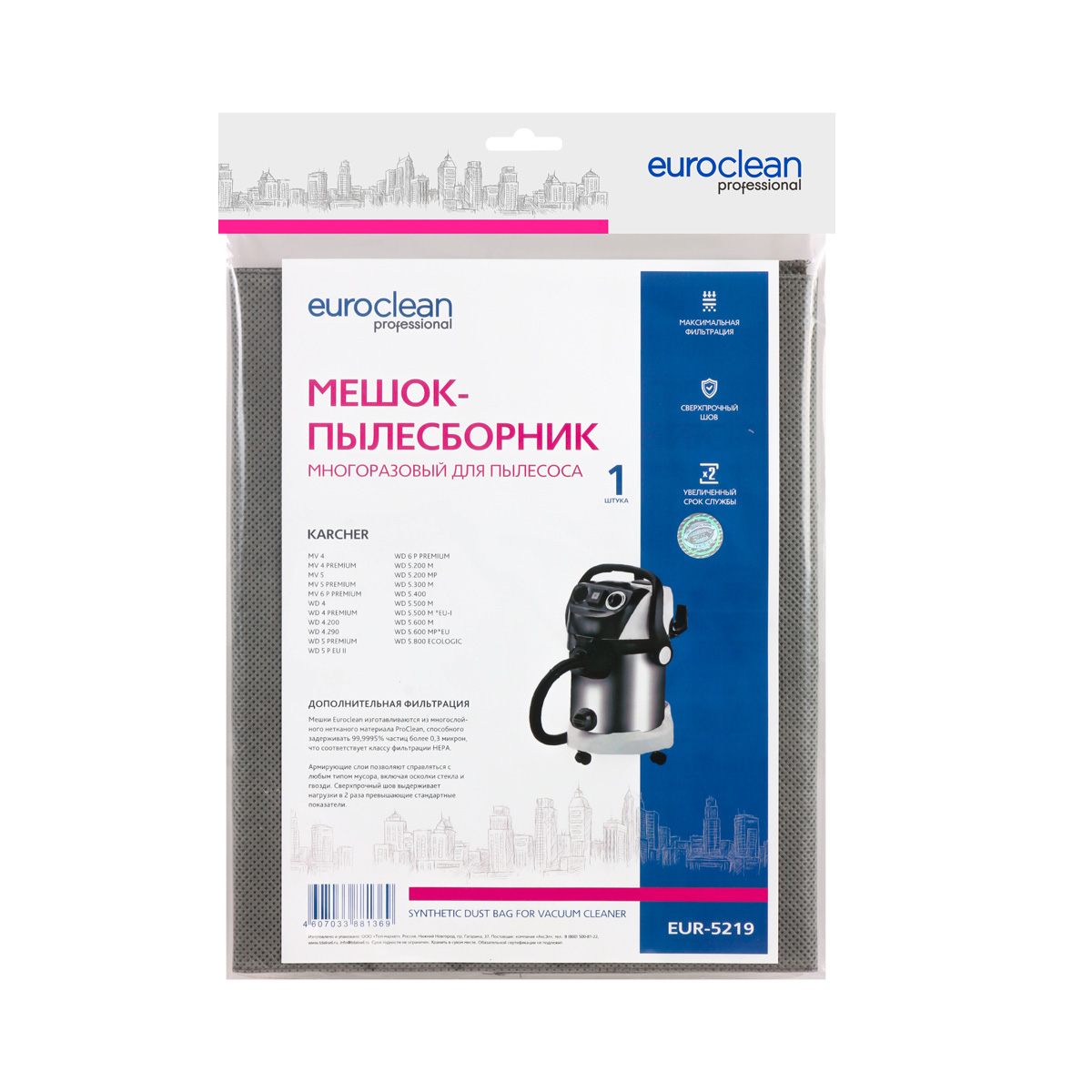 • Оригинальный синтетический мешок-пылесборник EURO Clean EUR-5219 предназначен для промышленных и строительных пылесосов KARCHER.