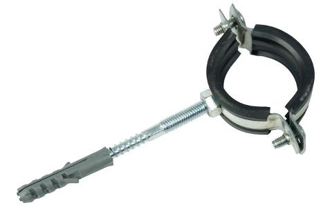 Трубные сантехнические хомуты предназначены для монтажа водопроводных, канализационных и других видов труб, укомплектованы полипропиленовым пластиковым дюбелем и сантехнической шпилькой-шурупом. В стандартном наборе полипропиленовый дюбель и сантехническая шпилька длиной 80 мм.