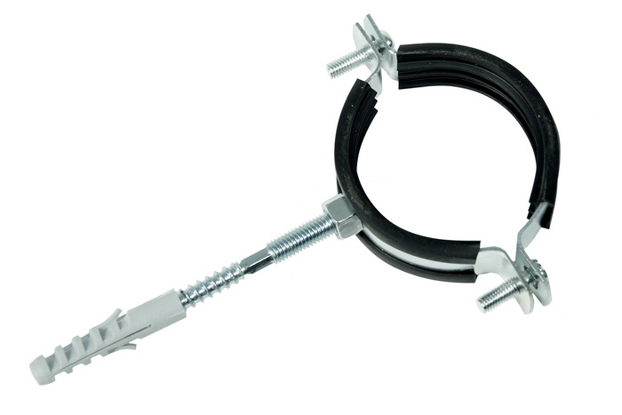 Трубные сантехнические хомуты предназначены для монтажа водопроводных, канализационных и других видов труб, укомплектованы полипропиленовым пластиковым дюбелем и сантехнической шпилькой-шурупом. В стандартном наборе полипропиленовый дюбель и сантехническая шпилька длиной 80 мм.