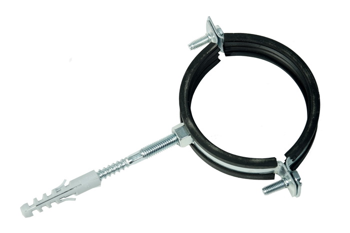 Трубные сантехнические хомуты предназначены для монтажа водопроводных, канализационных и других видов труб, укомплектованы полипропиленовым пластиковым дюбелем и сантехнической шпилькой-шурупом. В стандартном наборе полипропиленовый дюбель и сантехническая шпилька длиной 80 мм.