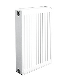 Радиатор из двух панелей сдвумя дополнительными оребрениями. Глубина 105мм.