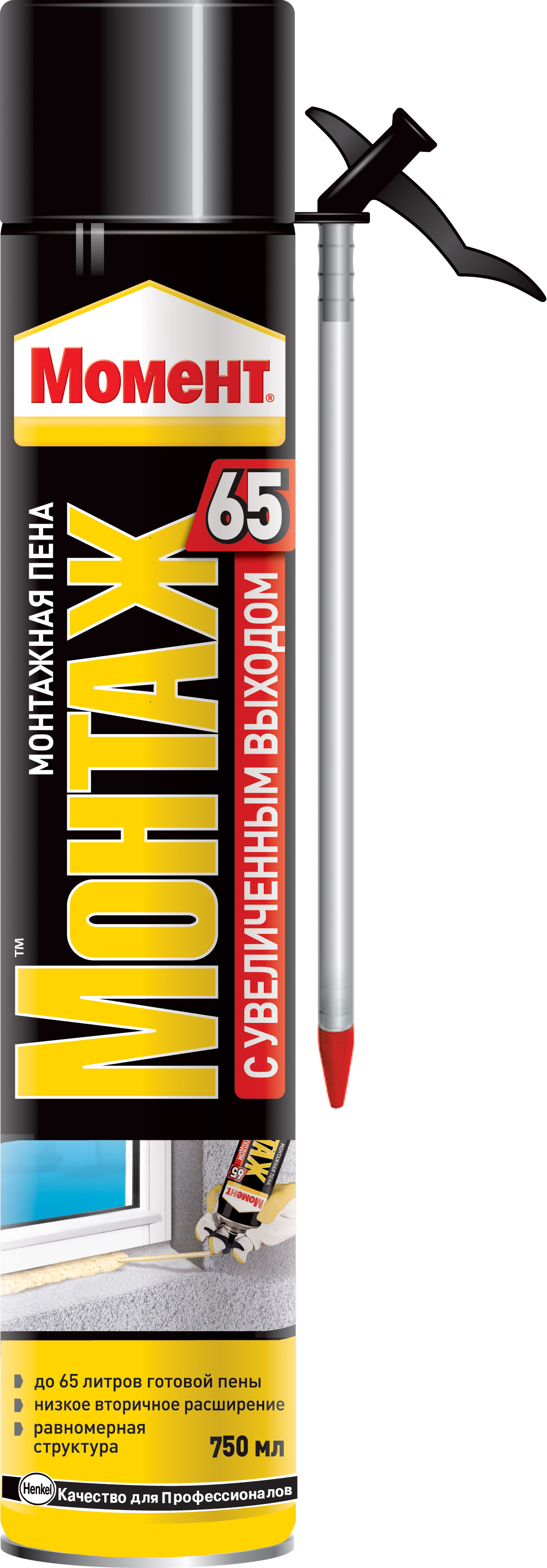 Монтажная пена Момент 750 мл представляет собой готовую к применению однокомпонентную полиуретановую пену, затвердевающую под воздействием влажности воздуха.