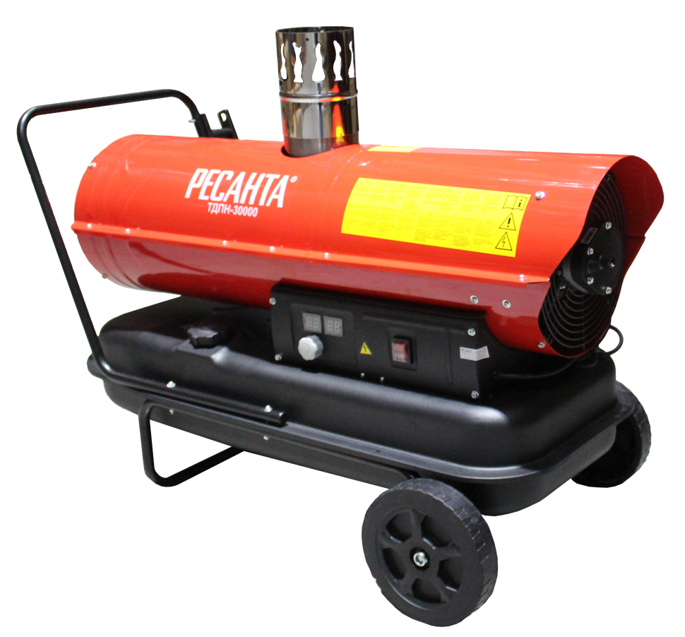 Тепловая пушка имеет простое управление. Термостат автоматически поддерживает заданную температуру, в процессе не требуется ручное регулирование настроек. Среди отличительных особенностей модели стоит отметить и соответствие нормам пожарной безопасности. Имеется защита от перегрева, а при угасании пламени по любой причине дизельная тепловая пушка автоматически отключается. Для безопасной эксплуатации также предусмотрена защита от воспламенения. Для удобства транспортировки Ресанта ТДПН-30000 оснащена колесами.