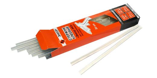Диаметр стержня: 7 мм Длина стержня: 200 мм Кол-во стержней в упаковке: 20 шт. Цвет: прозрачный Вязкость при 170 °С: 19 000 cps Точка размягчения: 84 °С Открытое время: 30 сек. Время схватывания: 20 сек.