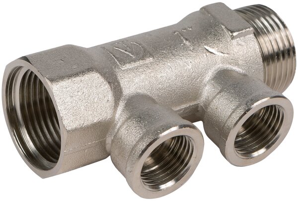 • Латунный никелированный коллектор на 2, 3 или 4 выхода диаметром 1/2" с внутренней резьбой.