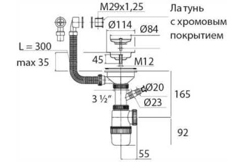 • Сифон VIRPLAST Элит 3.1/2х40 с отводом д/ст.м и переливом 100332 для моек и умывальников с нержавеющим выпуском.