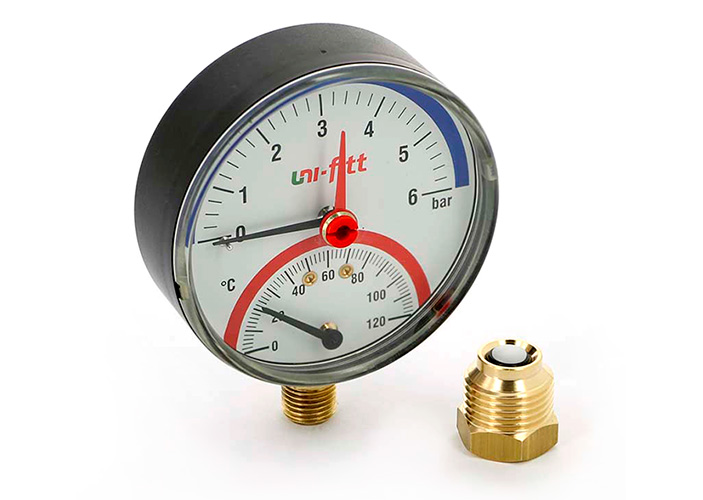 Термоманометр радиальный 10 атм/120°С 1/2",80 мм UNI-FITT (311P3442)