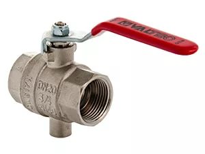 • Латунный никелированный шаровой кран со штуцером для подключения датчика температуры погружного типа.