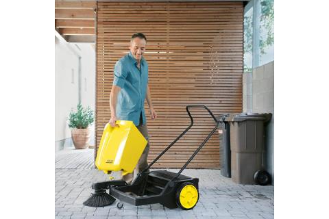 Внушительная рабочая ширина этой подметальной машины (70см), с 32 литровым контейнером удивительно легко сметает мусор, который можно легко опорожнить.