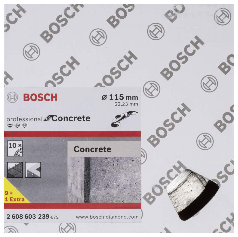 Диск алмазный Bosch 2608603239 предназначен для резки бетона с помощью угловой шлифовальной машины. В комплекте 10 штук.