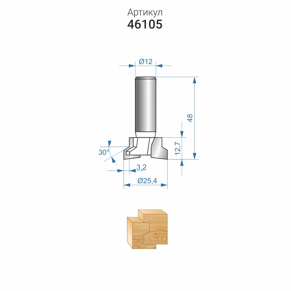 Фреза пазовая конструкционная (Ø 25,4мм Т-образная, хвостовик 12мм) по дереву Энкор (46105)