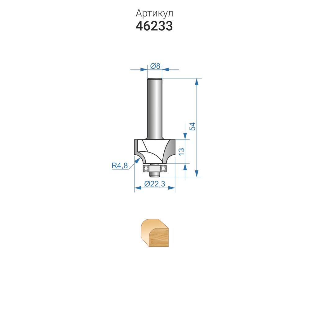 Фреза кромочная калевочная (Ø 22,3х13 мм; R 4,8 мм; хвостовик 8 мм) по дереву Энкор (46233)