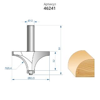 Фреза кромочная калевочная (Ø 63,5х32 мм; R 25,4 мм; хвостовик 12 мм) по дереву Энкор (46241)