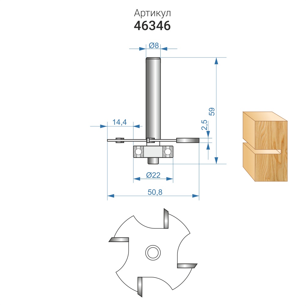 Фреза кромочная фальцевая (Ø 50,8х2,5 мм; хвостовик 8 мм) по дереву Энкор (46346)